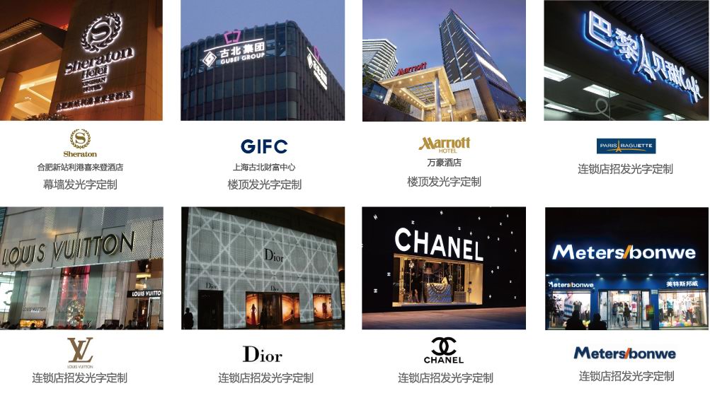 行業(yè)產(chǎn)品:五星級(jí)酒店標(biāo)識(shí)牌|品牌連鎖店招牌|旅游景區(qū)指示牌|地產(chǎn)小區(qū)導(dǎo)示牌|購(gòu)物中心標(biāo)志牌|辦公樓宇指示牌|市政設(shè)施標(biāo)牌|醫(yī)療教育指示牌|大型場(chǎng)館標(biāo)識(shí)牌|店面招牌|門(mén)頭標(biāo)識(shí)